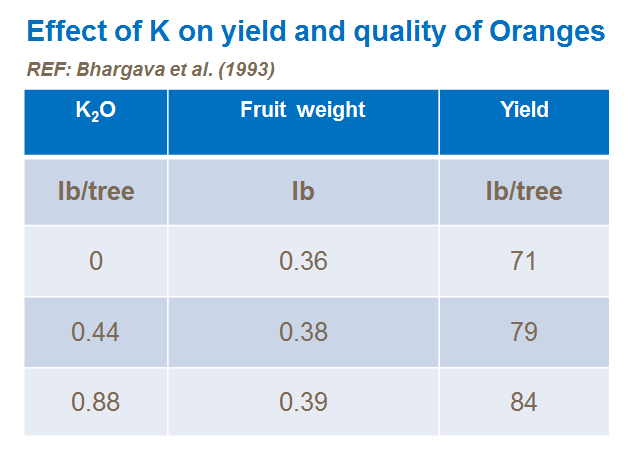 Trials have shown that balanced nutrition with N, P, K, and the micronutrients, boron, iron, manganese and zinc, will help to improve citrus yield through increasing fruit weight.